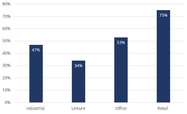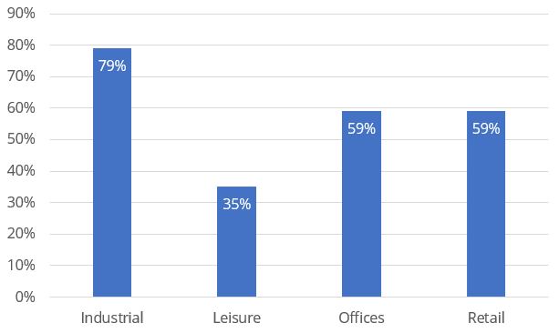 Across our key property sectors, industrial continues to prove resilient with 79% of rents collected, whilst offices and retail showed a minor decrease with both sectors collecting 59% for the quarter.